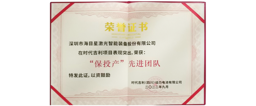 時代吉利(四川)贈予我司“保投產”先進團隊榮譽證書