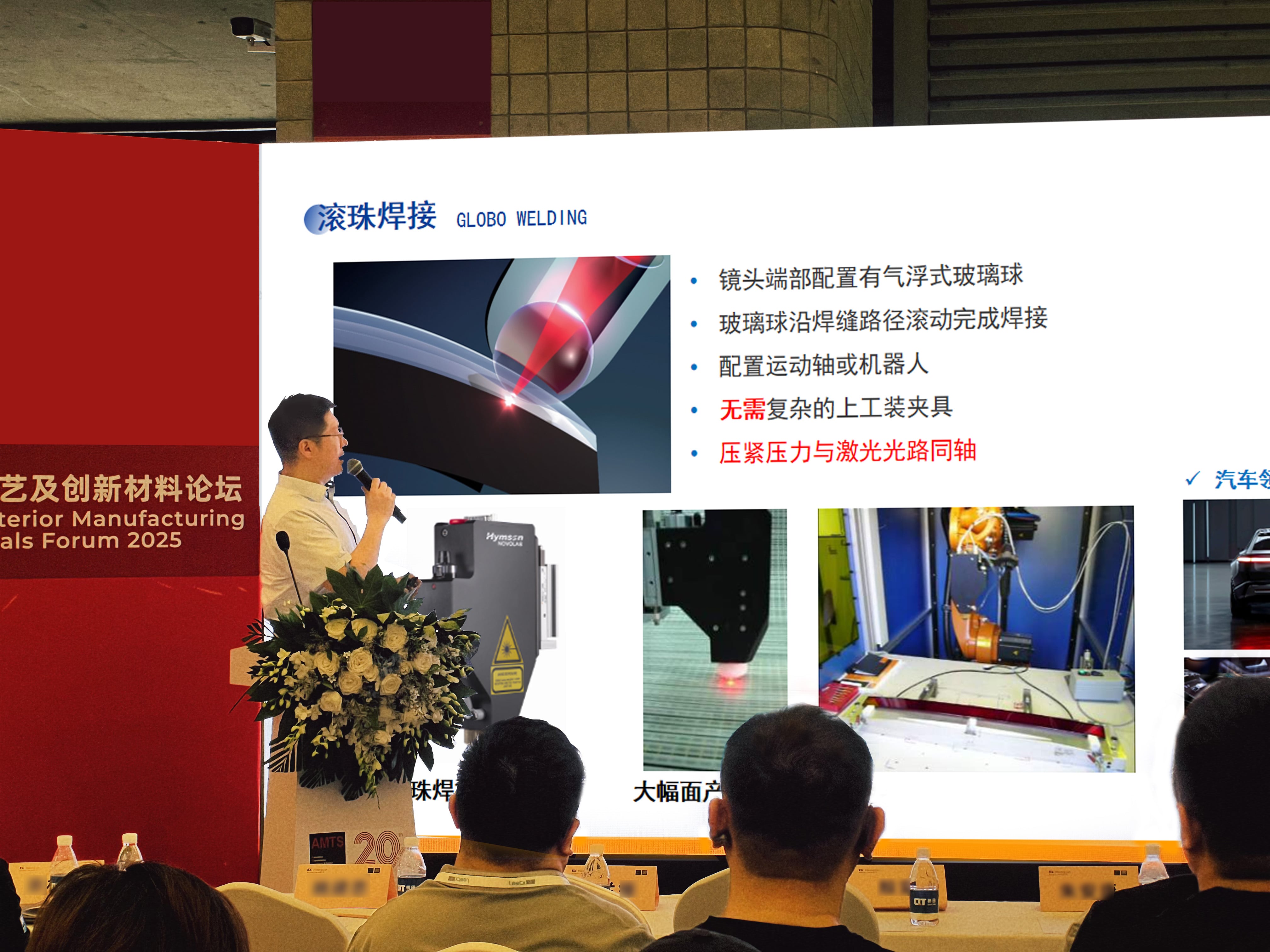在展會同期舉辦的高峰論壇上,海目星激光塑料事業部產品總監殷實發表了題為《激光塑料焊接不同工藝在汽車內外飾件上的應用案例》的演講,向現場嘉賓深度解析 海目星激光塑料焊接技術在汽車輕量化與智能化趨勢下的關鍵作用。