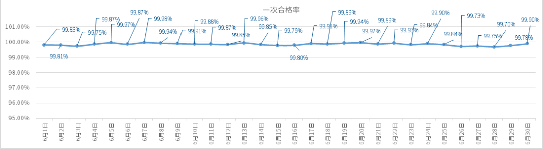 一次合格率99.6%以上(數據量為30天,平均每天生產12000PCS,共12000*30=360000PCS)